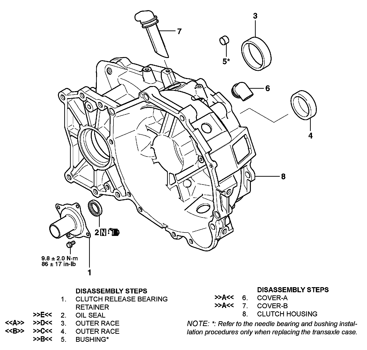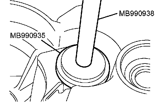 Using special tools MB990938 and MB990935, press fit the outer race into the clutch housing.