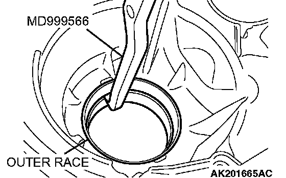Using special tool MD999566, remove the outer race from the clutch housing.