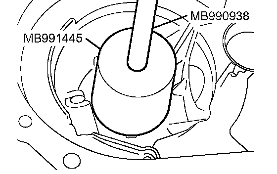 2. Using special tools MB990938 and MB991445, press fit the outer race into the clutch housing.