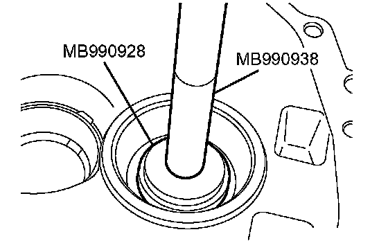 2. Using special tools MB990938 and MB990928, press fit the oil seal into the clutch housing.