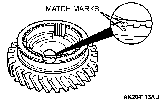 Make match marks on the reverse idler gear sleeve and reverse idler gear hub.