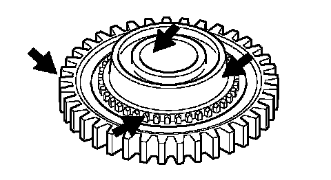3. Check the inside surface and front and back sides of the reverse idler gear for damage and excessive wear.