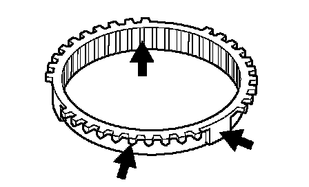 2. Check the inner surface of the synchronizer ring cone for damage and excessive wear. Also check that the inside ridges are intact.