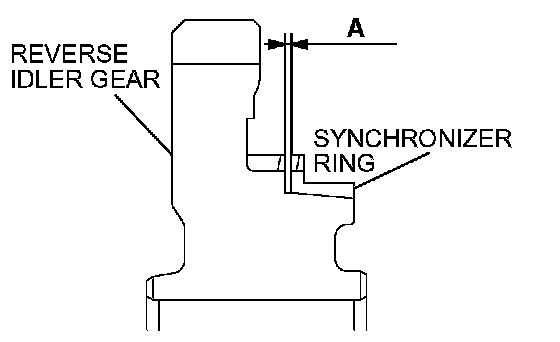 4. Press the synchronizer ring against the cone of the reverse idler gear and check clearance A. Replace the synchronizer ring if the clearance is less than the limit.