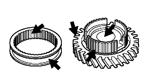 1. Check the clutch gear on the synchronizer ring for damaged and missing teeth.