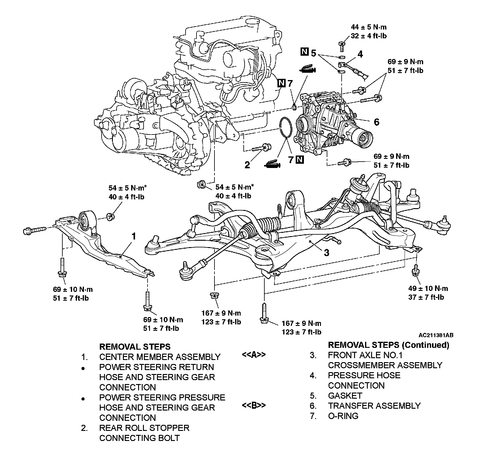 3. *: indicates parts which should be temporarily tightened, and then fully tightened with the engine weight applied on the vehicle body.