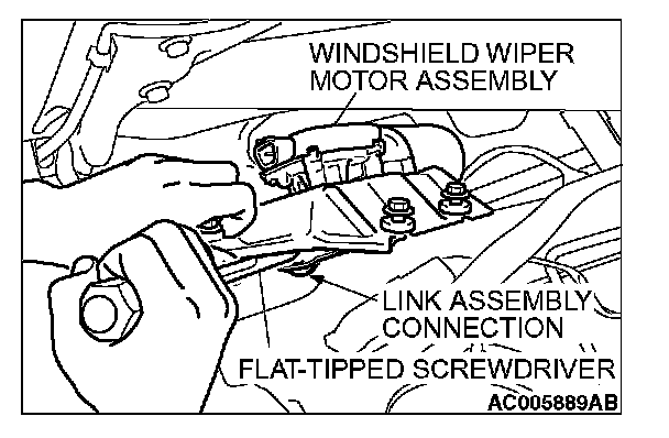 2. Use the flat-tipped screwdriver to disengage the link between the windshield wiper motor assembly and the link assembly to remove the windshield wiper motor assembly.