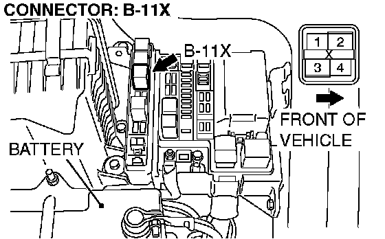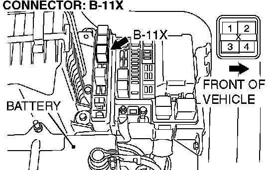 1) Remove the A/T control relay from the engine component relay box connector B-11X.