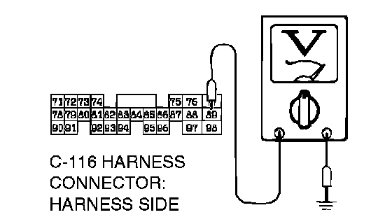 STEP 10. Measure the A/T control relay output voltage at PCM connector C-116 by backprobing.