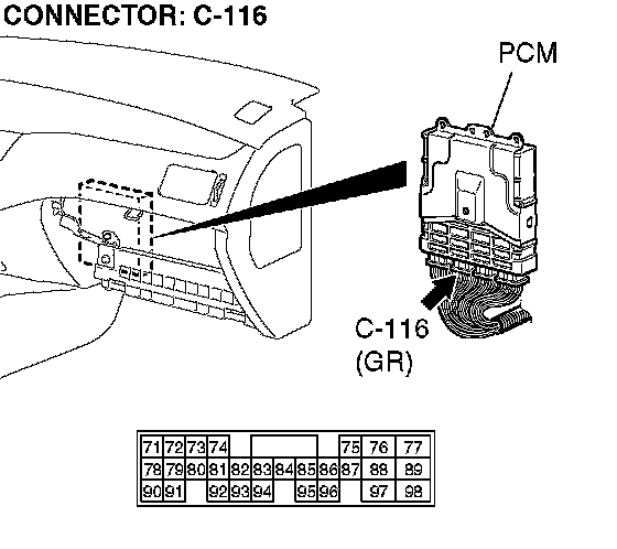 STEP 11. Check PCM connector C-116 for loose, corroded or damaged terminals, or terminals pushed back in the connector.
