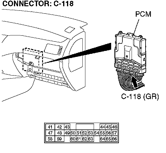 STEP 13. Check PCM connector C-118 for loose, corroded or damaged terminals, or terminals pushed back in the connector.