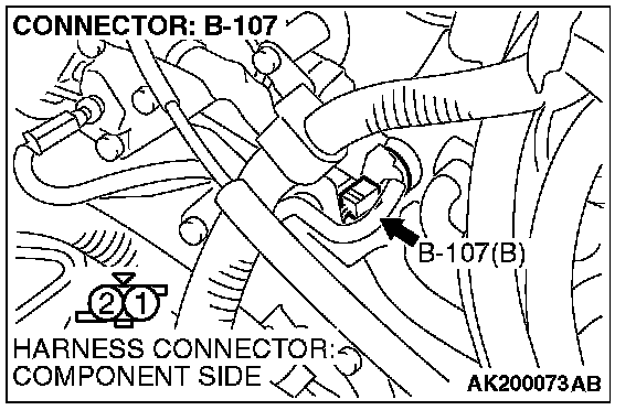 1. Disconnect the engine coolant temperature sensor connector B-107.