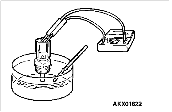 3. With the temperature sensing portion of engine coolant temperature sensor immersed in hot water, check resistance.