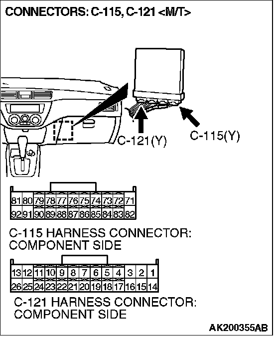 STEP 8. Check harness connectors C-115, C-121 at ECM