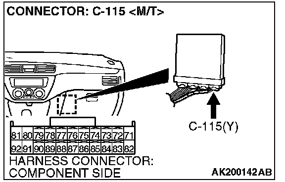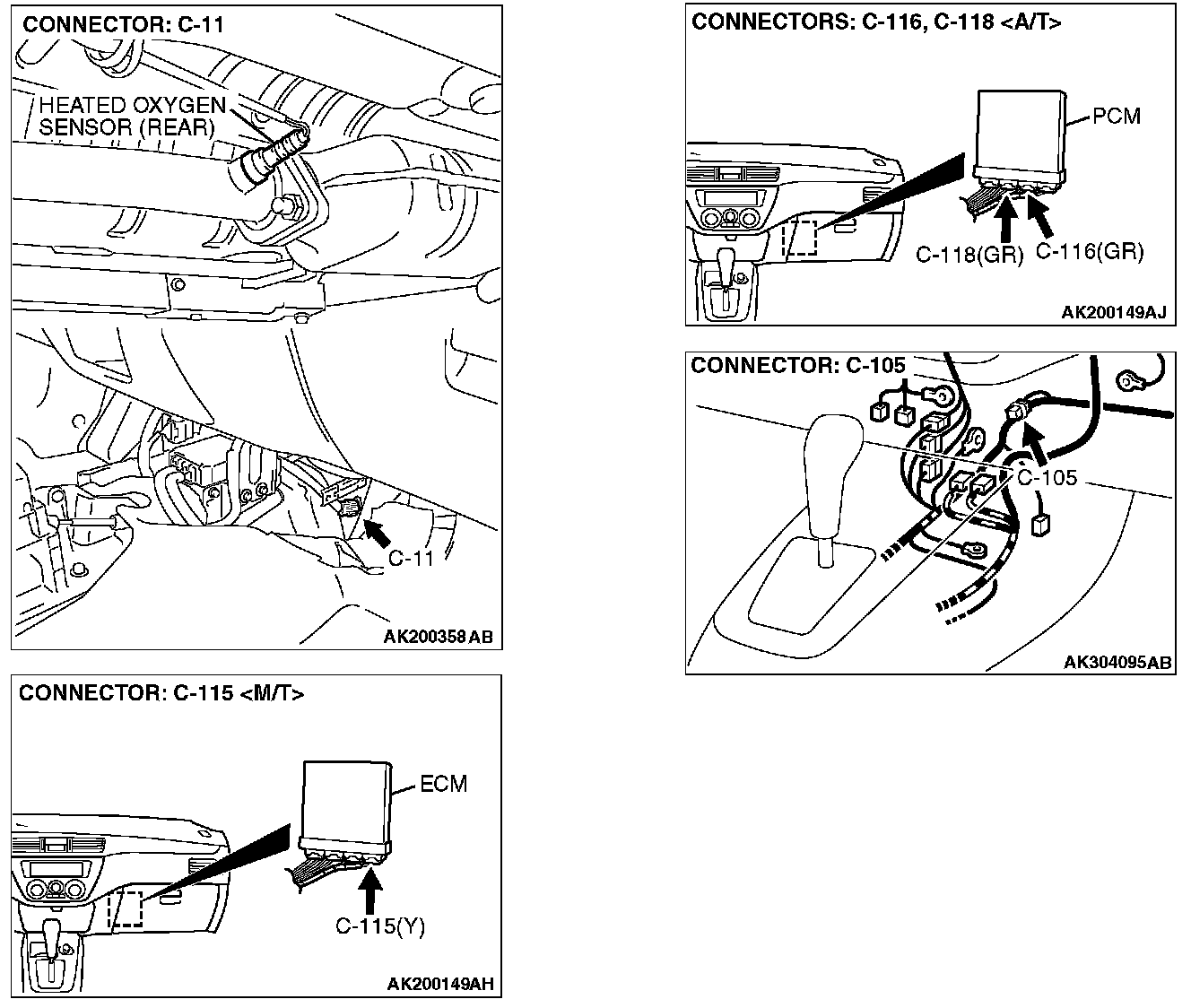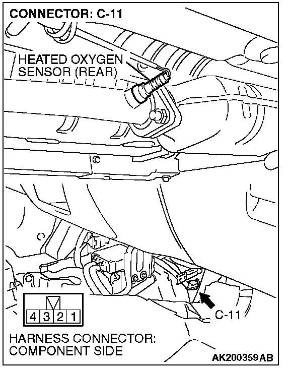STEP 1. Check harness connector C-11 at heated oxygen sensor (rear) and harness connector C-115 at ECM