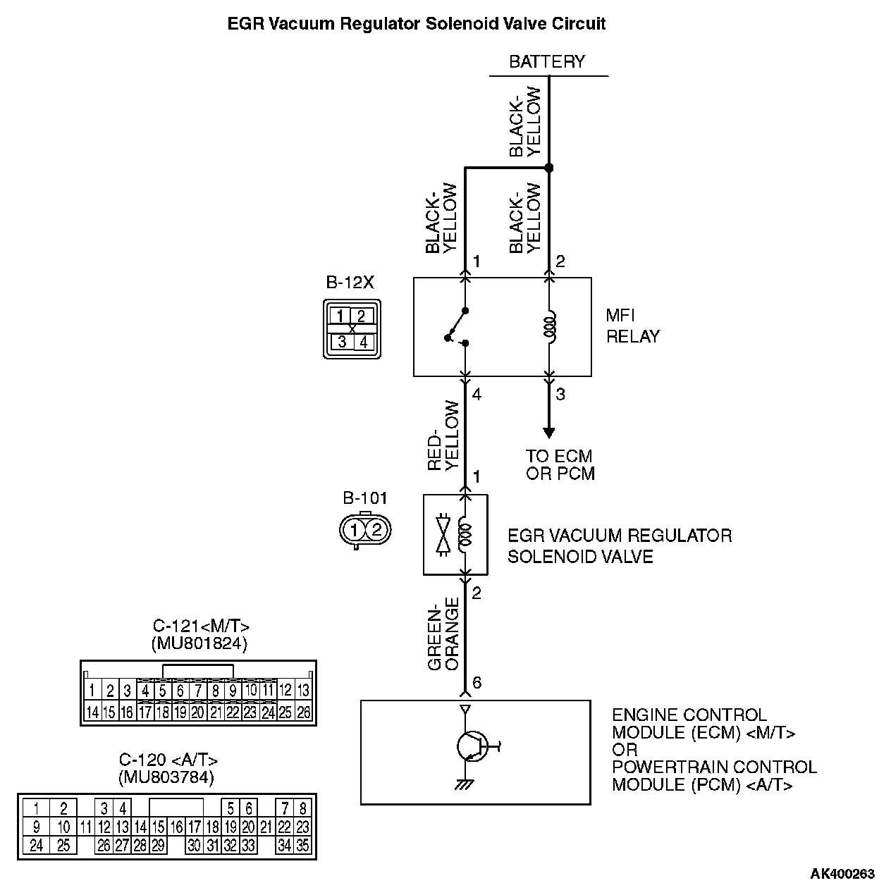 - The EGR vacuum regulator solenoid valve power is supplied from the MFI relay (terminal No.4).