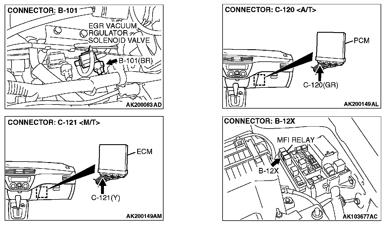 STEP 10. Check for harness damage between MFI relay connector B-12X (terminal No.4) and EGR vacuum regulator solenoid valve connector B-101 (terminal No.1).