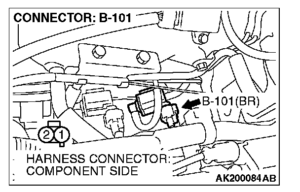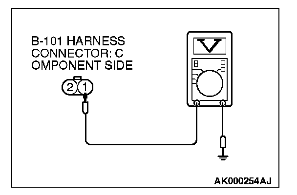 STEP 4. Measure the power supply voltage at EGR vacuum regulator solenoid valve harness side connector B-101.