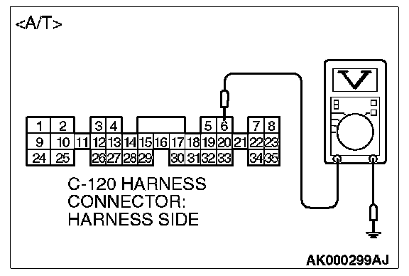 3. Measure the voltage between terminal No.6 and ground by backprobing.