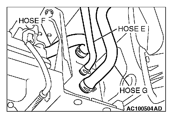 1. Disconnect hoses E, F and G from the evaporative emission canister side, and connect a hand vacuum pump to the evaporative emission canister instead of hose E, and plug the other nipples.