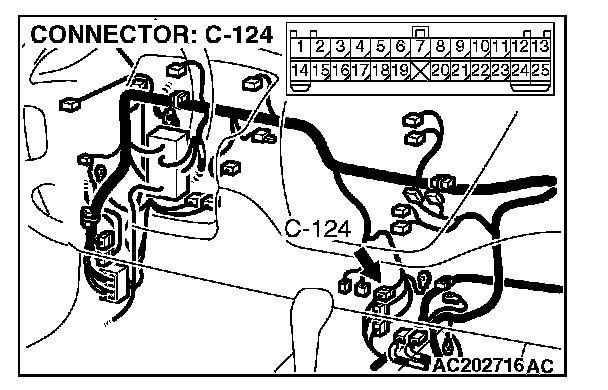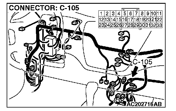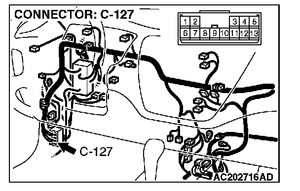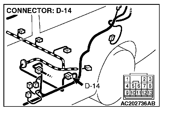 4. Connect special tool MB991658 to both halves of connector D-09.