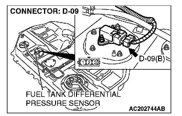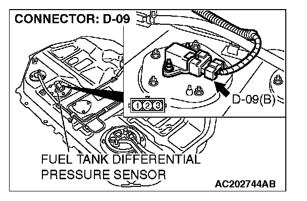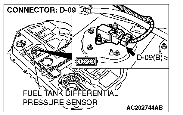 STEP 19. Measure the 5-volt reference signal at fuel tank differential pressure sensor connector D-09.