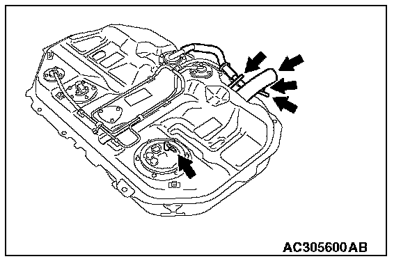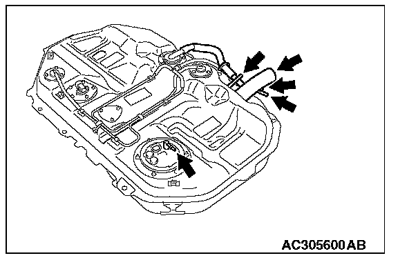2. Plug the filler hose, fuel pump feed nipple, hose H, hose L and hose Q connected to the fuel tank.