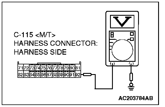 3. Measure the voltage between connector C-115 terminal 92