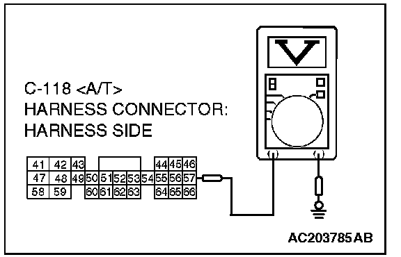 2. Measure the voltage between connector D-09 terminal 3 and ground.