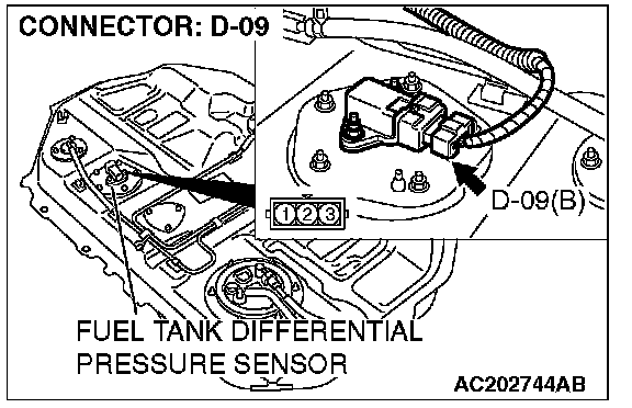 STEP 12. Check the signal voltage at fuel tank differential pressure sensor connector D-09.1. Remove the fuel tank. (Refer to Fuel Tank.)