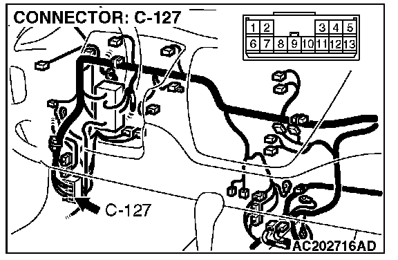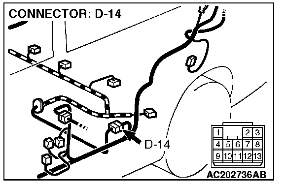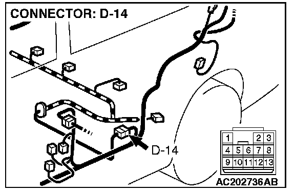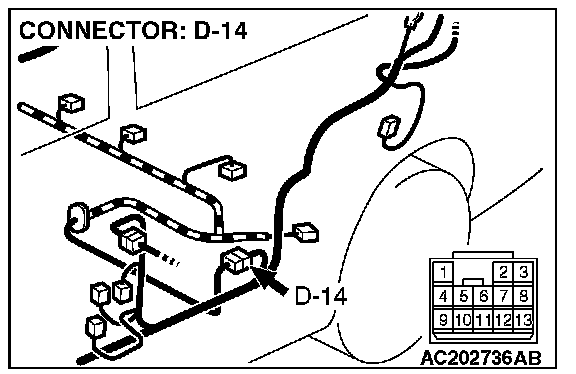 4. Connect special tool MB991658 to both halves of connector D-09.