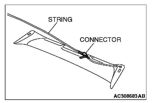 1. Tie string on high-mounted stoplight harness (at connector side).