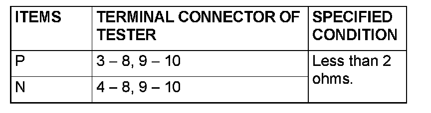 - The measured voltage should measure 0.5 volts or less. (When select lever is in "N" range.)