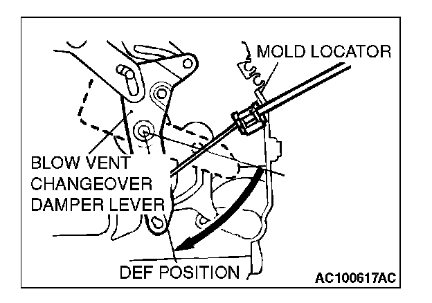 2. Set the heater unit's blow vent changeover damper lever to the DEF position (turn the damper relay to the left until it stops) and install the cable.