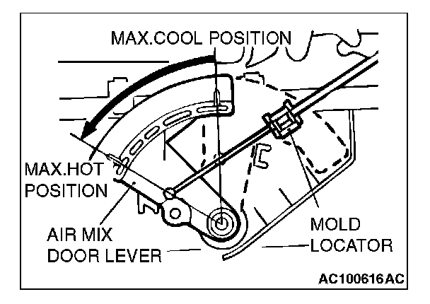 2. Set the heater unit s air mix door lever to the MAX HOT position (turn the damper lever as the left illustration) and attach the cable.