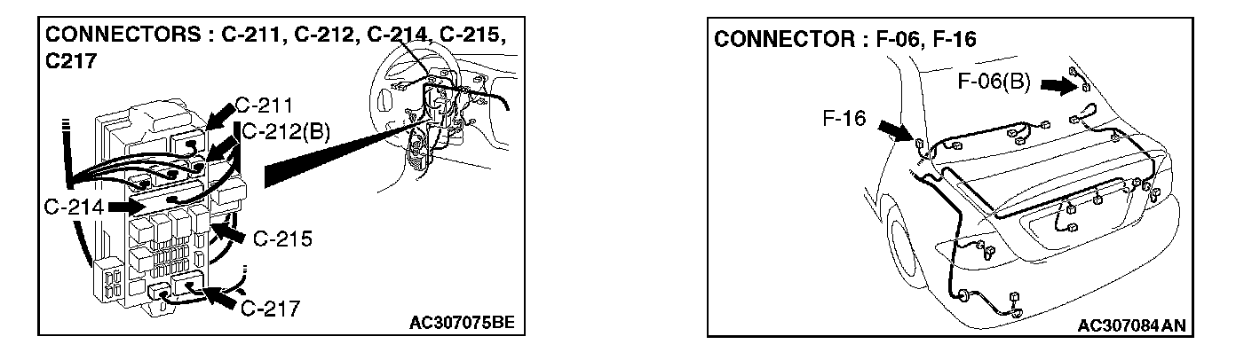 STEP 13. Check rear window defogger connector F-06 for damage.