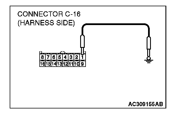 4. Disconnect A/C-ECU connector C-16 and ground harness side terminal No.1.