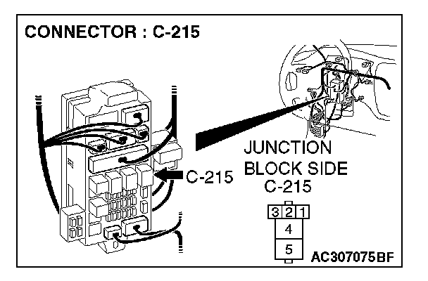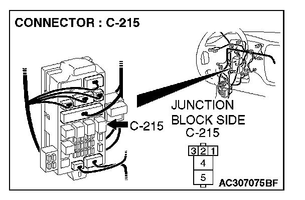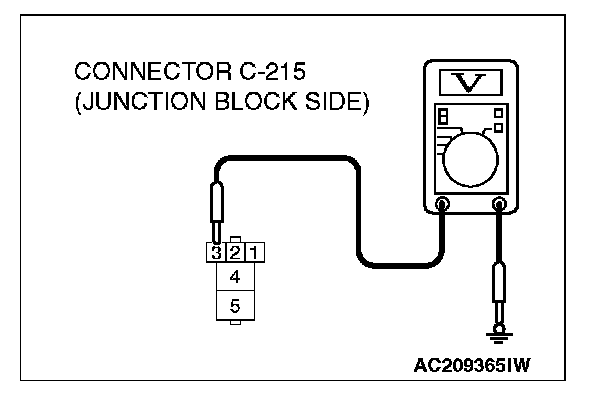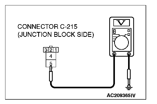 1. Disconnect rear window defogger relay connector C-215, and measure the voltage at the junction block side.
