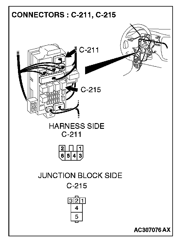 NOTE: Also check junction block connector C-211. If junction block connector C-211 is damaged, repair or replace the connector as described in Harness Connector Inspection.