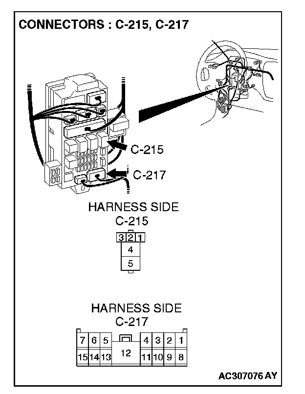STEP 4. Check rear window defogger relay connector C-215 for damage.