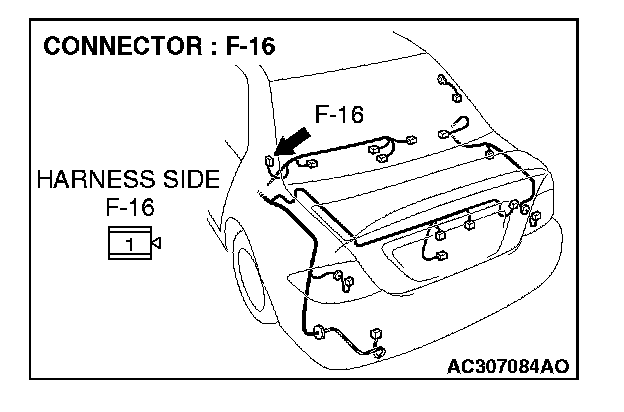 STEP 2. Check rear window defogger connector F-16 for damage.