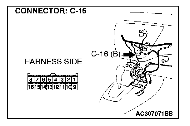 STEP 11. Check A/C-ECU connector C-16 for damage.
