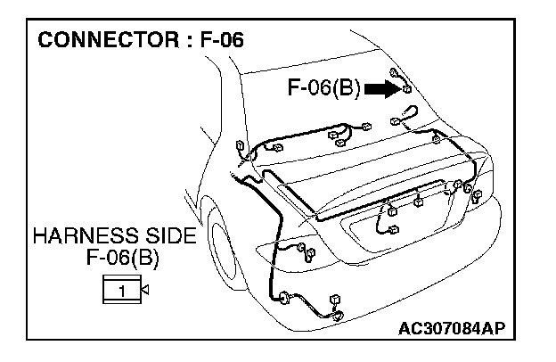 1. Disconnect rear window defogger connector F-06, and measure at the wiring harness side.