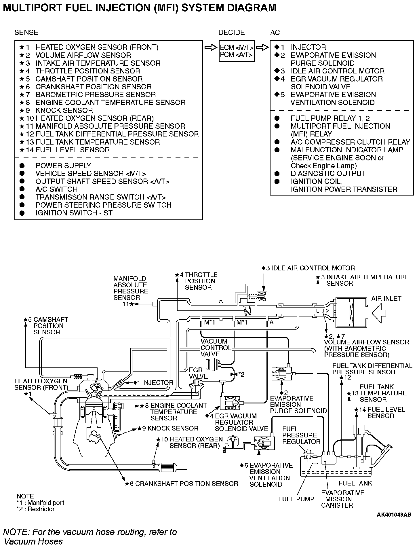 The Multiport Fuel Injection System consists of sensors, actuators and the engine control module (ECM)