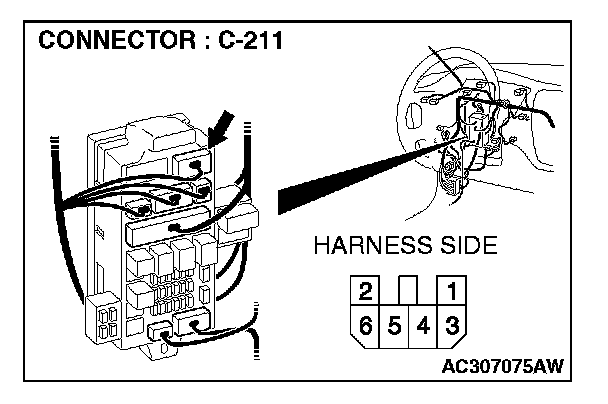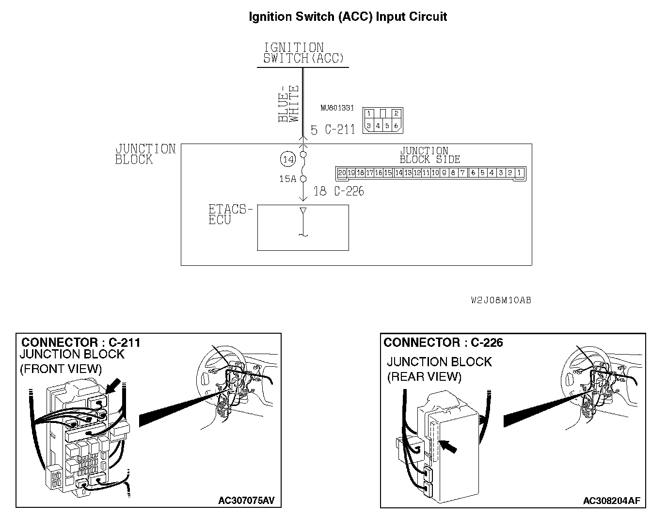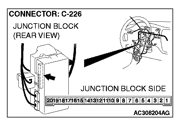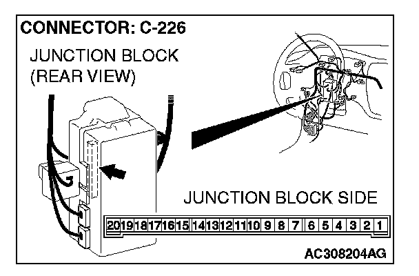 1. Disconnect ETACS-ECU connector C-226 and measure the voltage available at the junction block side of the connector.