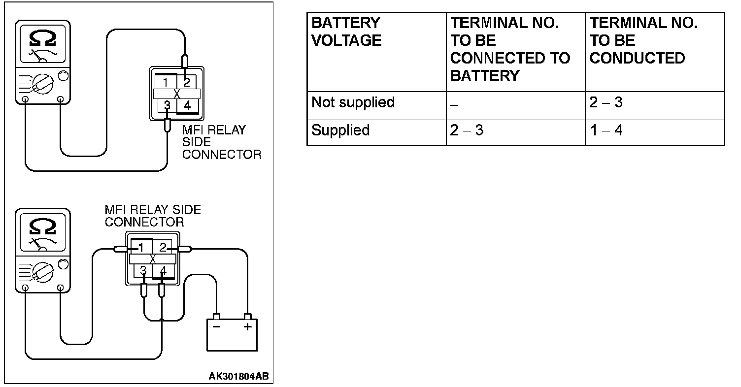 Multiport Fuel Injection (MFI) Relay Continuity Check: