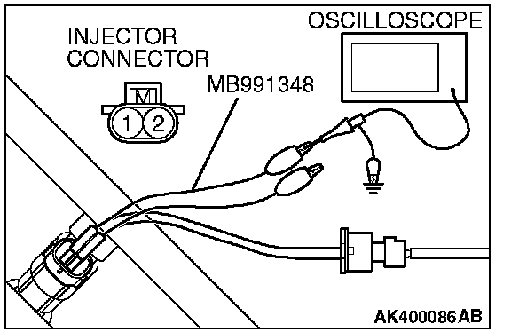 1. Disconnect the injector connector, and connect the test harness special tool (MB991348) in between. (All terminals should be connected.)