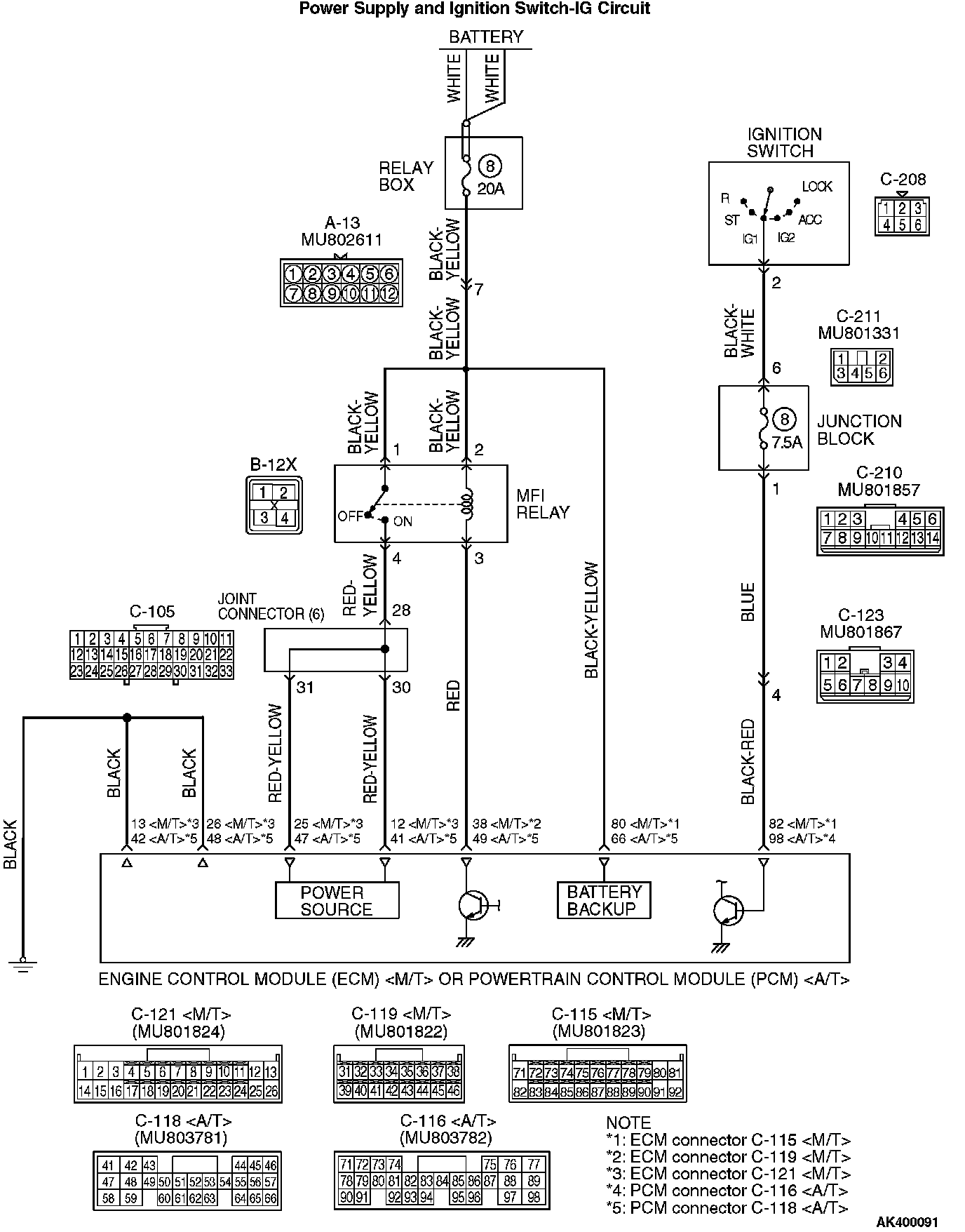 - Battery positive voltage is constantly supplied to the ECM (terminal No.80)