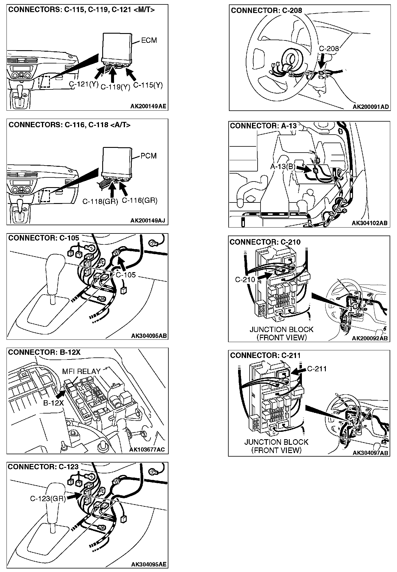 STEP 1. Check connector B-12X at MFI relay for damage.