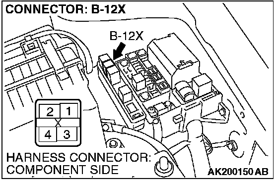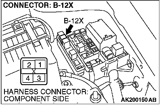 STEP 3. Measure the power supply voltage at MFI relay harness side connector B-12X.